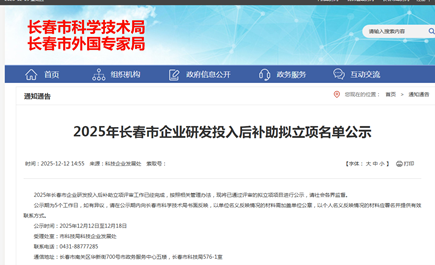 长春市企业研发投入后补助项目是地方政府落实创新驱动发展战略的重要举措,旨在通过财政资金引导,激励企业加大研发投入强度,提升自主创新能力,推动区域产业结构优化升级与高质量发展。此次立项评审工作严格遵循相关管理办法及评审标准,经过多维度、多层次的规范审核流程,从研发投入真实性、技术创新先进性、项目实施可行性等核心维度进行综合考评,最终确定拟立项名单。